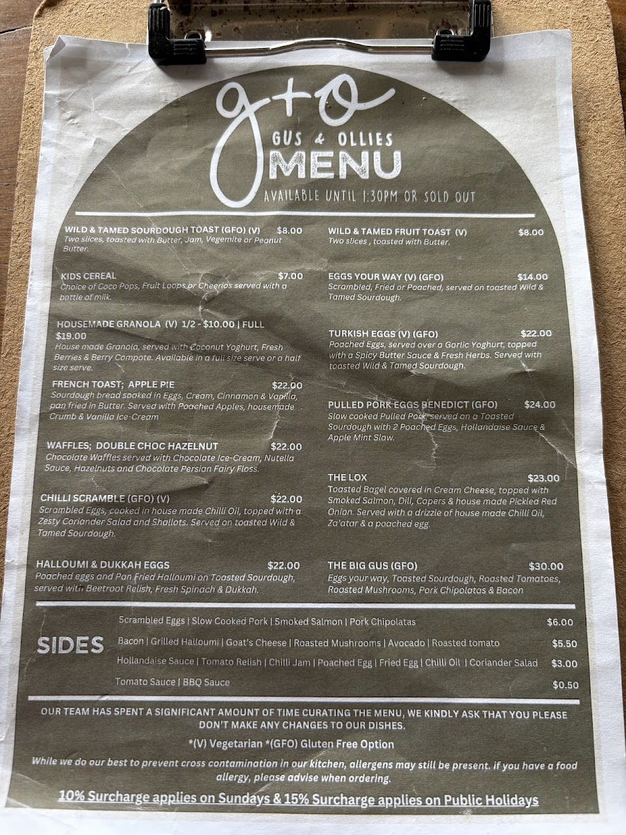 Gus & Ollies Menu